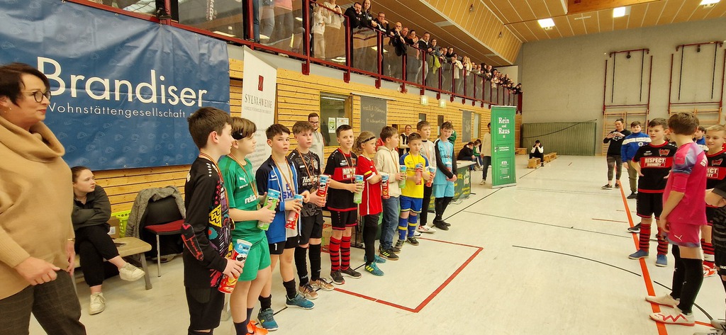 Sportlich gesehen waren von den FSV 1921 Brandis Nachwuchsteams der F bis D-Junioren mit Sicht auf die erste Halbserie der Saison 2023/24 vordere Plätze von vorn herein nicht zu erwarten gewesen. Für das von Denise und Jasmin Christoph trainierte FSV F-Junioren Team war es gar das erste Mal, das sich die Trennwände der Mehrzweckhalle öffneten und die kleinen Kicker gemeinsam zu einem Turnier in der für sie „riesengroßen Halle“ angetreten waren. Dazu waren die Gegner in der Vorrunde mit den späteren Finalisten aus Wermsdorf und vom SV Tresenwald zu übermächtig. In der Endrunde gelangen dem Gastgeber dann gegen Tapfer 06 (0-2) und SpVgg 1899 (0-1) achtbare Ergebnisse auf dem Weg zu Platz 8. Sieger bei den F-Junioren wurde der FSV Blau Weiß Wermsdorf durch ein 4-1 im Finale gegen den SV Tresenwald Machern und Bronze ging an den SV Panitzsch Borsdorf der im kleinen Finale Premieregast FSV Großpösna mit 3-2 im Neunmeter Duell bezwingen konnte. Beim Turnier der E-Junioren hatte Team 1 vom FSV 1921 Brandis die große Chance um die Medaillen zu spielen. Durch ein spätes 0-3 gegen Panitzsch Borsdorf wurde eine vordere Gruppenplatzierung in der Vorrunde leider vergeben. Am Ende sicherten sich die Brandiser Kicker durch zwei 2-1 Siege gegen Tapfer Leipzig und den TSV Großsteinberg aber noch einen guten 5. Platz. Das Team 2 des Gastgebers hatte es in der Vorrunde mit beiden Finalisten zu tun, verlor dabei gegen Dürrweitzschen und Burkartshain jeweils achtbar (0-2). Im Spiel um Platz 7 wurde dann mit 3-1 (1-1) vom Neunmeterpunkt gegen Tapfer 06 Leipzig gewonnen. Auch die beiden E-Junioren Teams des FSV werden von der frisch gekürten Brandiser Ehrenamtspreisträgerin 2024 Denise Christoph und ihrer Tochter Jasmin trainiert. Das E-Junioren Turnier gewann der TSV Burkartshain 1906 im Finalspiel mit 4-2 gegen den FSV aus Dürrweitzschen. Platz 3 ging hier an den FSV Beilrode 09 der sich nach einem 0-0 nach 12 Minuten mit 2-1 im Neunmeterduell gegen den SV Panitzsch Borsdorf durchsetzen konnte.