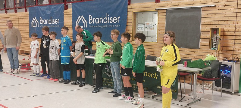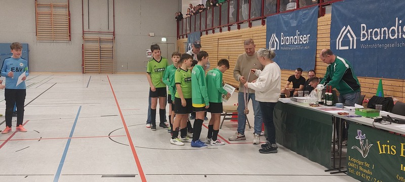 Das Turnier der D2-Jugend war 2026 von ausgeglichenen Spielen sowie einem enorm spannenden Turnierverlauf geprägt. In der Gruppenphase hätten in Gruppe A fast alle Teams das Halbfinale um die Medaillenränge erreichen können. Am Ende qualifizierten sich dafür der JFV Neuseenland mit 5 Punkten und der Leipziger SC 1901 mit 4 Punkten (6-4 Tore). Der SV Panitzsch Borsdorf belegte trotz eines 3-2 Sieges gegen den LSC nur Platz drei, da man gegen Neuseenland 1-3 verlor und gegen Falkenhain beim 1-1 wertvolle Punkte liegen ließ. In der Gruppe B setzten sich Burkartshain (7 Punkte) und Wermsdorf (6 Punkte) durch und zogen ins Halbfinale ein. Dem SV Tapfer 06 reichte das 1-1 im letzten Gruppenspiel gegen Burkartshain lediglich zu Platz drei (4 Punkte). Das Gastgeberteam des FSV Brandis traf auf eine starke Konkurrenz und musste sportlich Lehrgeld bezahlen. Die Offensivbemühungen blieben meist harmlos. Dennoch zeigte die Mannschaft über das gesamte Turnier hinweg ordentlichen Einsatz und versuchte kämpferisch dagegenzuhalten. Die besten Leistungen zeigten die im Turnier von Denise Christoph und Mareen Hällßig-Heller betreuten Brandiser Jungs beim 0-2 gegen Burkartshain und im Platzierungsspiel 7/8 gegen den Falkenhainer SV (0-0). Mit 3-2 vom Neunmeterpunkt wurde am Ende Platz 7 erreicht. Im Spiel um Platz 5 setzte sich der SV Panitzsch Borsdorf 1920 durch. Mit spürbarer Entschlossenheit nach dem verpassten Halbfinale besiegte man den SV Tapfer 06 Leipzig mit 4-1. Dem JFV Neuseenland ging in der Finalrunde hingegen etwas die Luft aus. Im Halbfinale unterlag man zunächst dem Nordsachsen Team aus Wermsdorf mit 1-3, ehe der JFV aus dem Leipziger Süden auch das Spiel um Platz 3 gegen Burkartshain mit 0-4 verlor. Der TSV 1906 Burkartshain konnte sich somit über die Bronzemedaillen freuen. Zum Turniersieg steigerte sich der Leipziger SC 1901. Im Halbfinale setzte sich das Team nach spannenden Verlauf bei der Lotterie vom Neunmeterpunkt mit 5-4 (2-2) gegen Burkartshain durch. Im Finale entschied schließlich ein einziger Treffer das ausgeglichene Spiel um Gold und Silber gegen den FSV Blau Weiß Wermsdorf zu Gunsten des LSC. Die Auszeichnungen erhielten die D-Jugend Kicker aus dem Hallencupserie-Sponsorenpool von Frau Iris Bade (Iris Blumeneck Brandis) und Herrn Jens Kögler (Gerüstbau Kögler Brandis). Abschließend geht ein Dankeschön an alle mitwirkenden Eltern der Brandiser Spieler und an das ehrenamtliche Organisationsteam für ihren starken Einsatz rund ums Turnier.